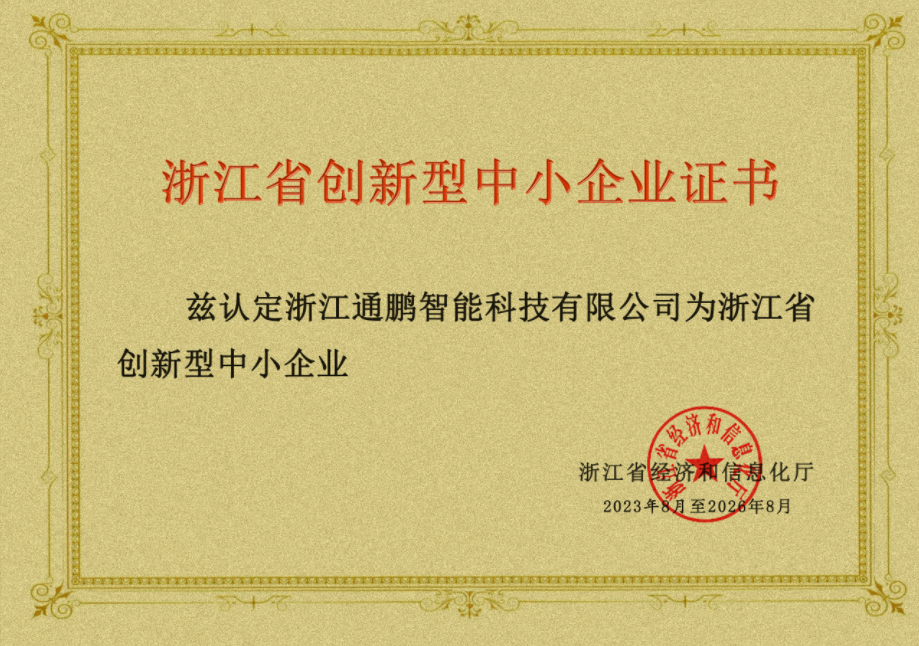 2023年08月 公司被浙江省经济和信息化厅认定为“浙江省创新型中小企业”