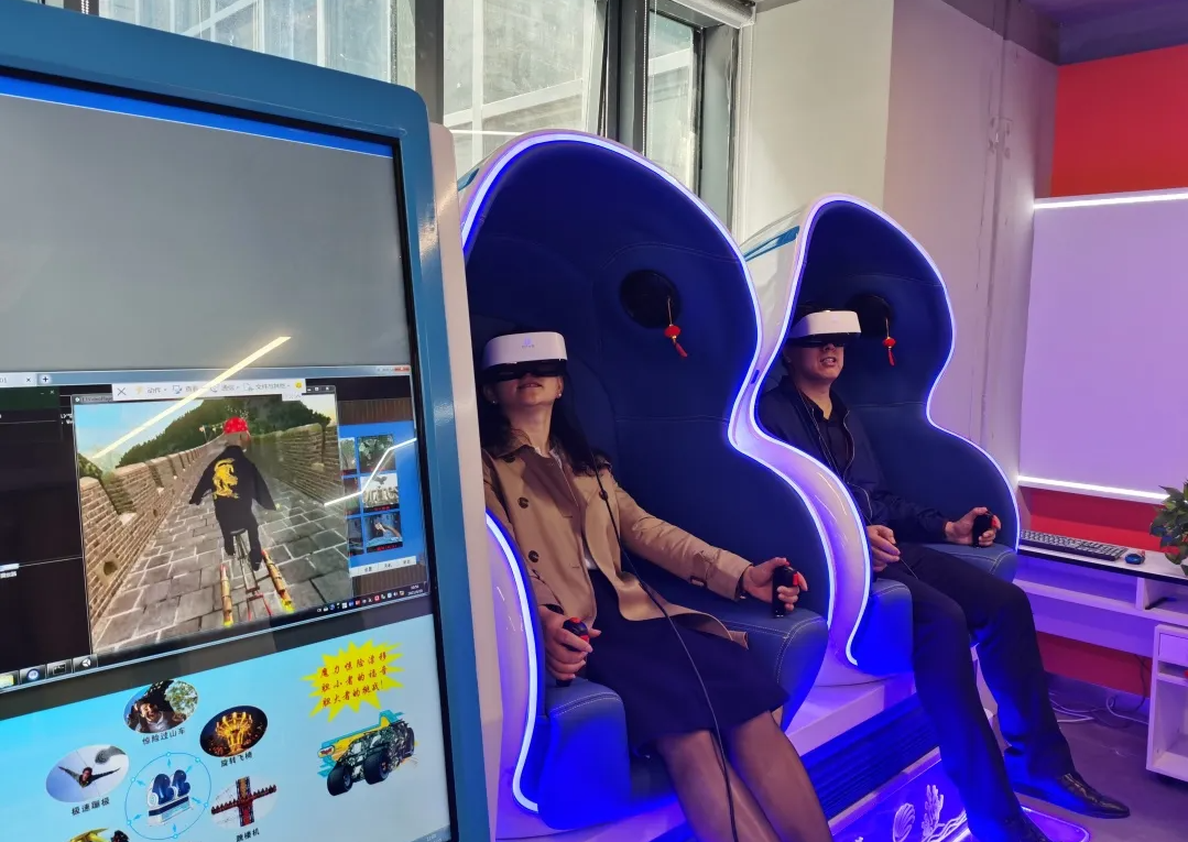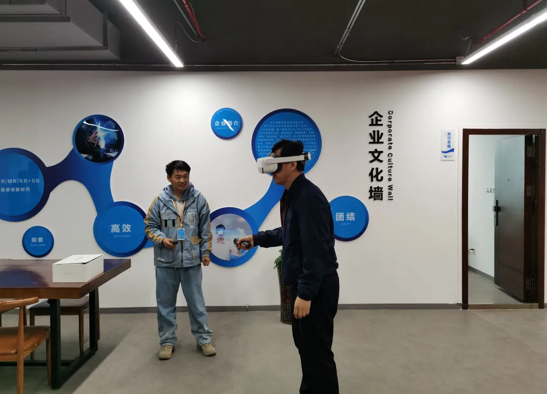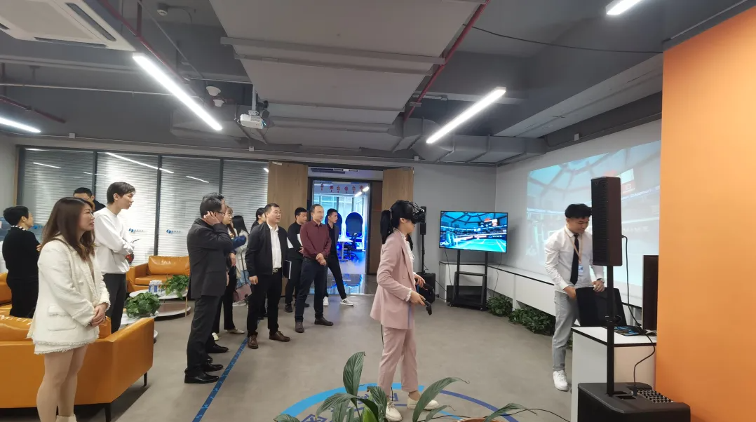 通鹏科技董事长王建平、执行副总裁姚淑芬等公司领导参与接待来访领导及嘉宾一行。董事长王建平向参访领导及嘉宾汇报了通鹏科技VR/AR技术在智慧教育、公安模拟训练、消防救援模拟训练、党建教育、智慧旅游、智慧城市等方面的研发成果及未来的研究方向。双方还就人工智能、VR/AR技术在儿童成长领域、农村留守儿童等应用场景进行了深度讨论。
