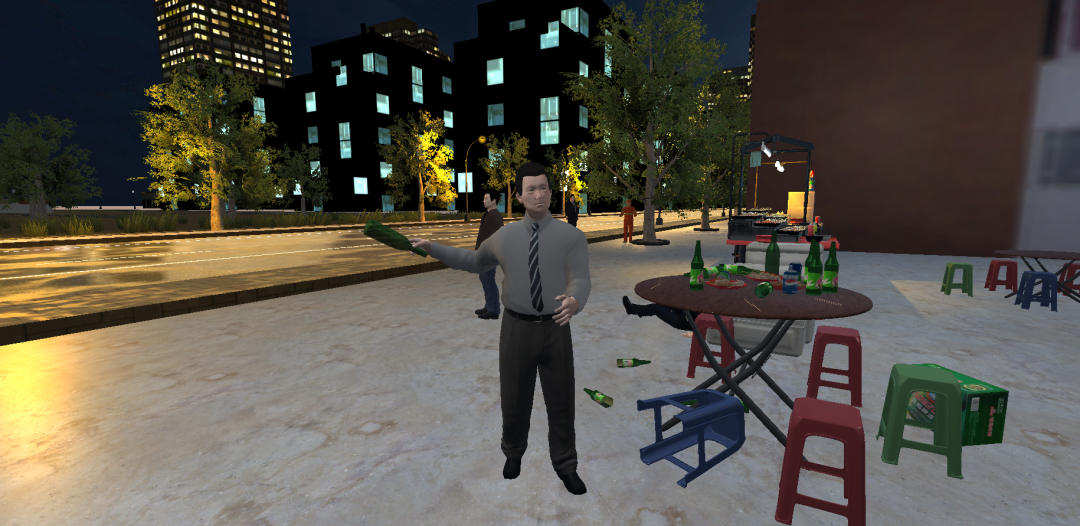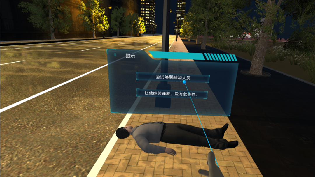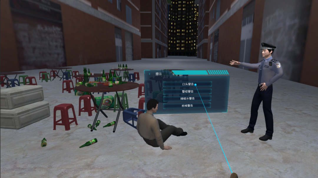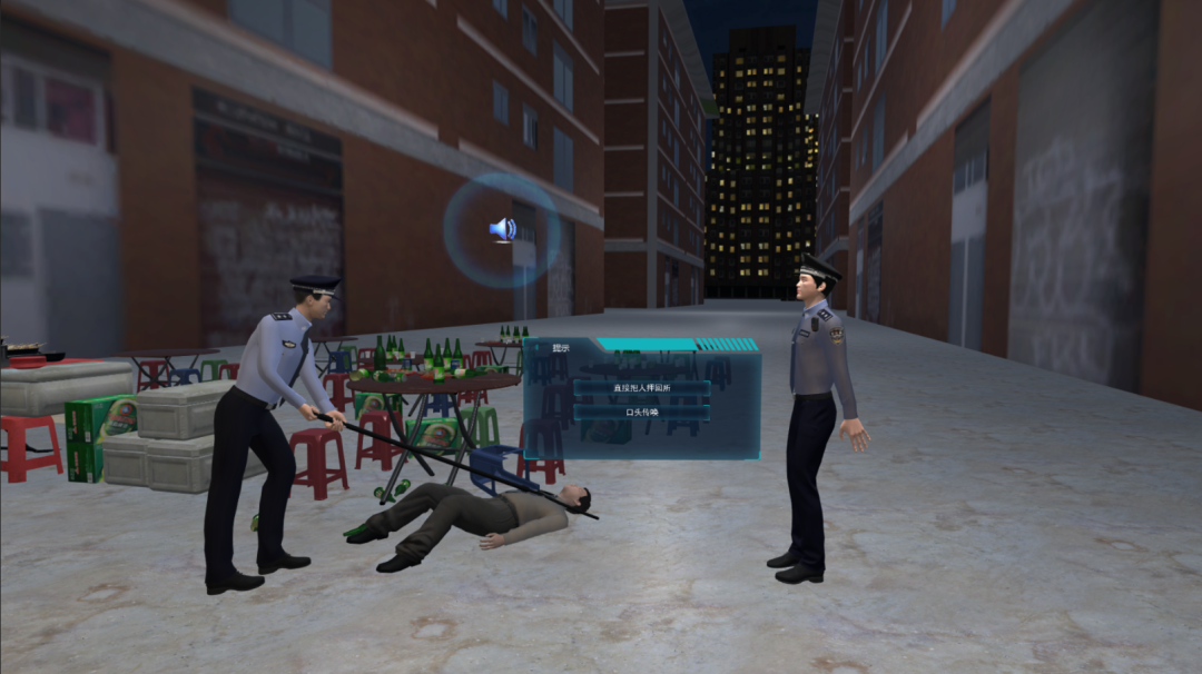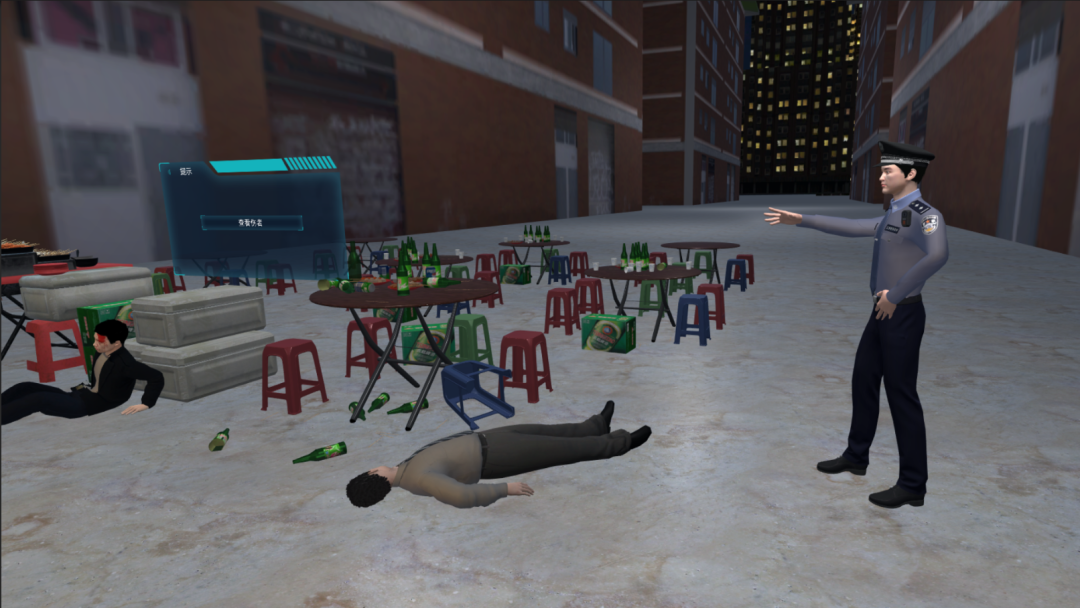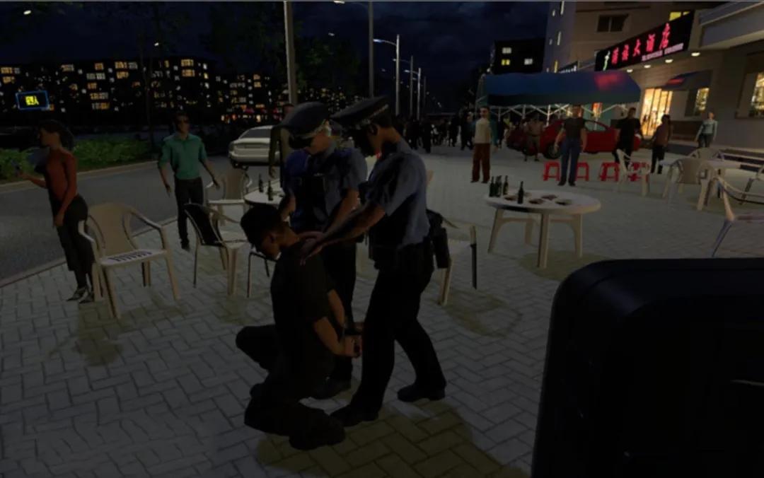 醉酒警情处置VR模拟训练系统根据真实案件系统还原,进行全流程技能训练、执法规范化训练、应急处置训练。