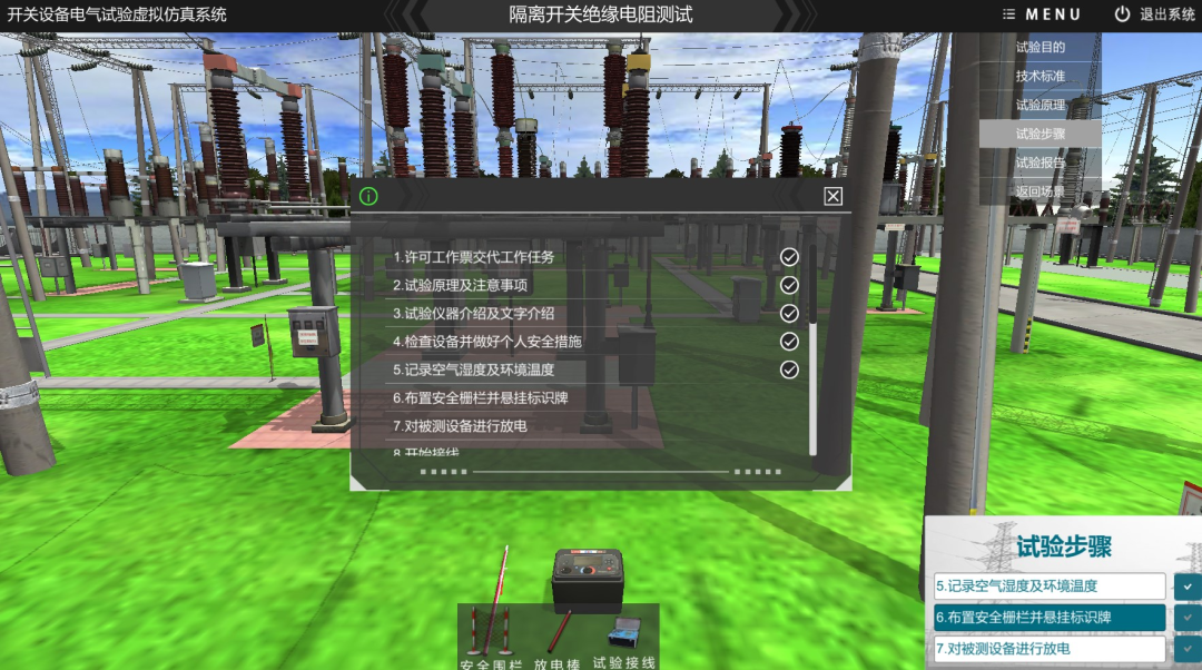 以满足《电气试验工技术规范》的要求为前提,模拟指令下达、停电作业、工器具选择、安全检查,试验过程等电气试验的全过程。