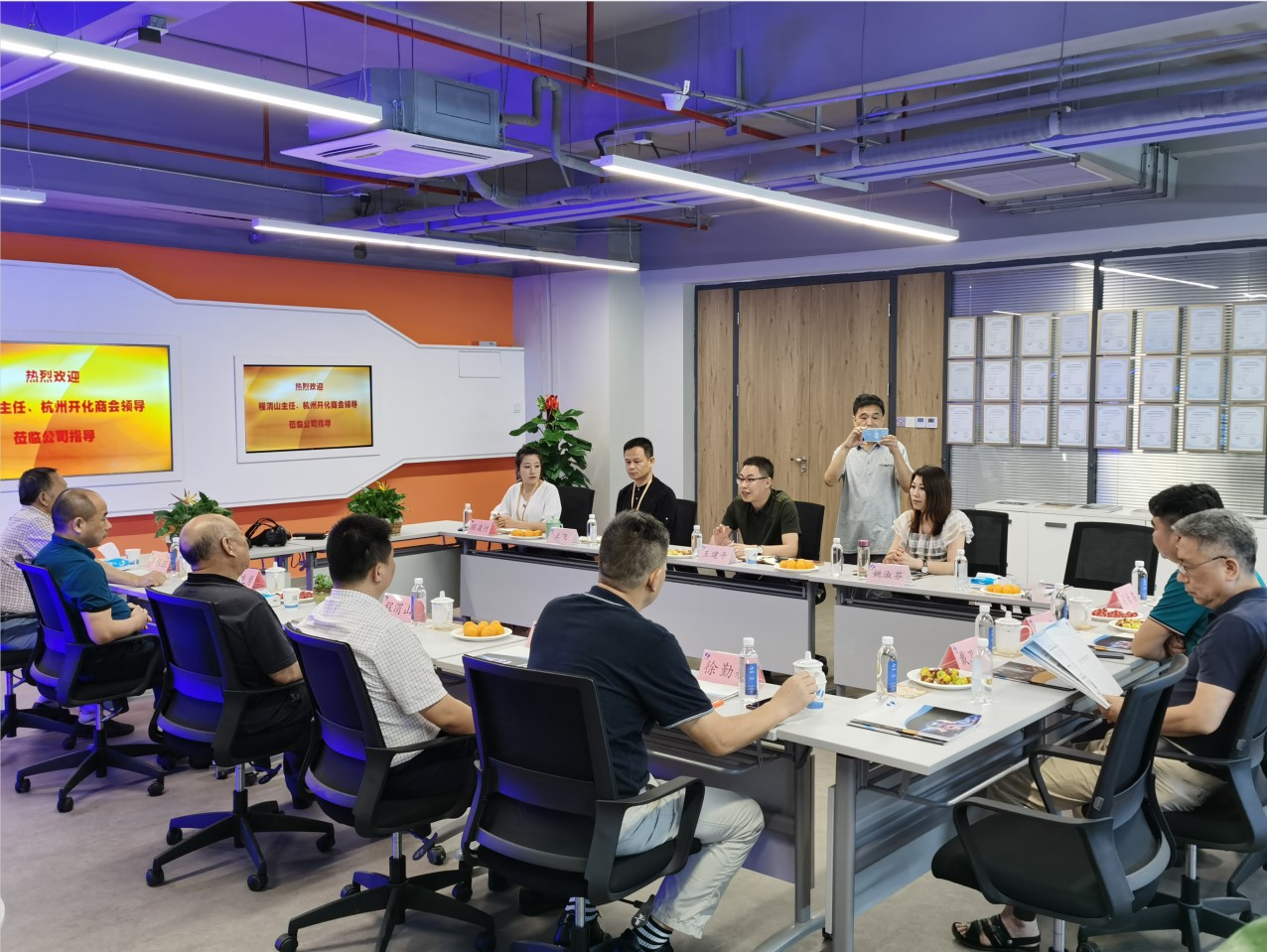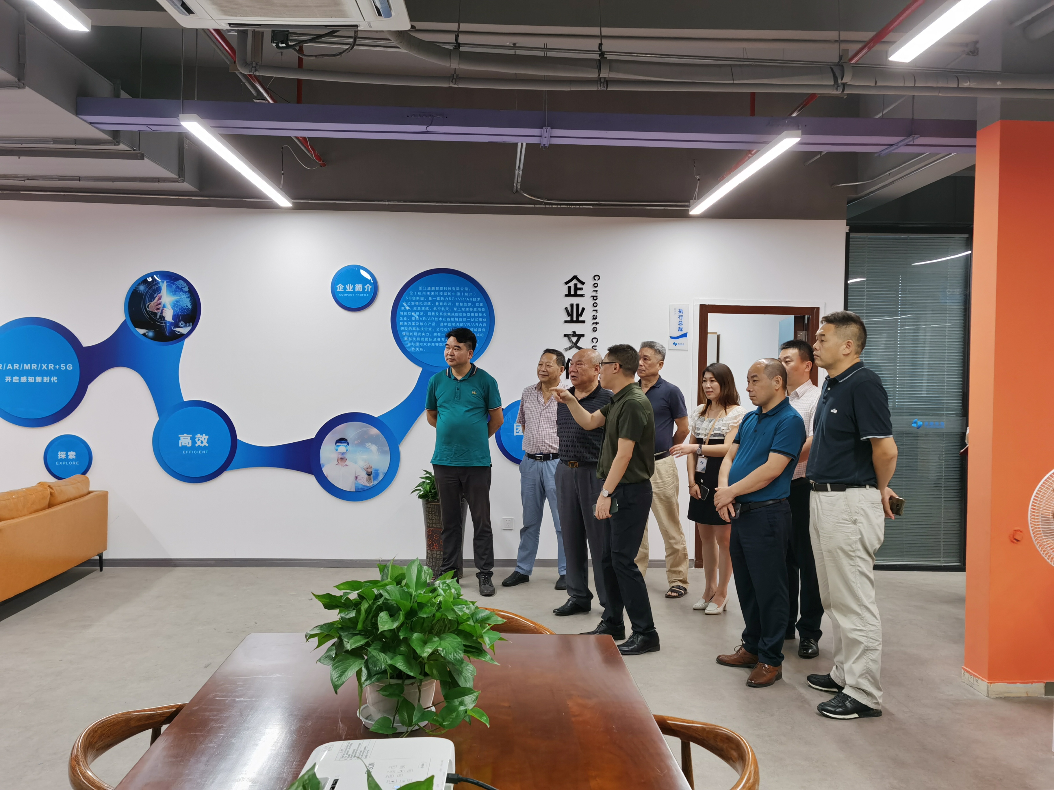 2020年07月05日15时许,浙江省人大常委会原副主任程渭山、杭州开化商会会长陈先勇、秘书长姜根旺、常务副会长邵军、副会长党支部书记邹云龙、副会长监事会主席戴卫群、商会办公室主任吴乐其、杭州开化商会顾问徐勤耕处长等领导一行到通鹏科技调研指导。
