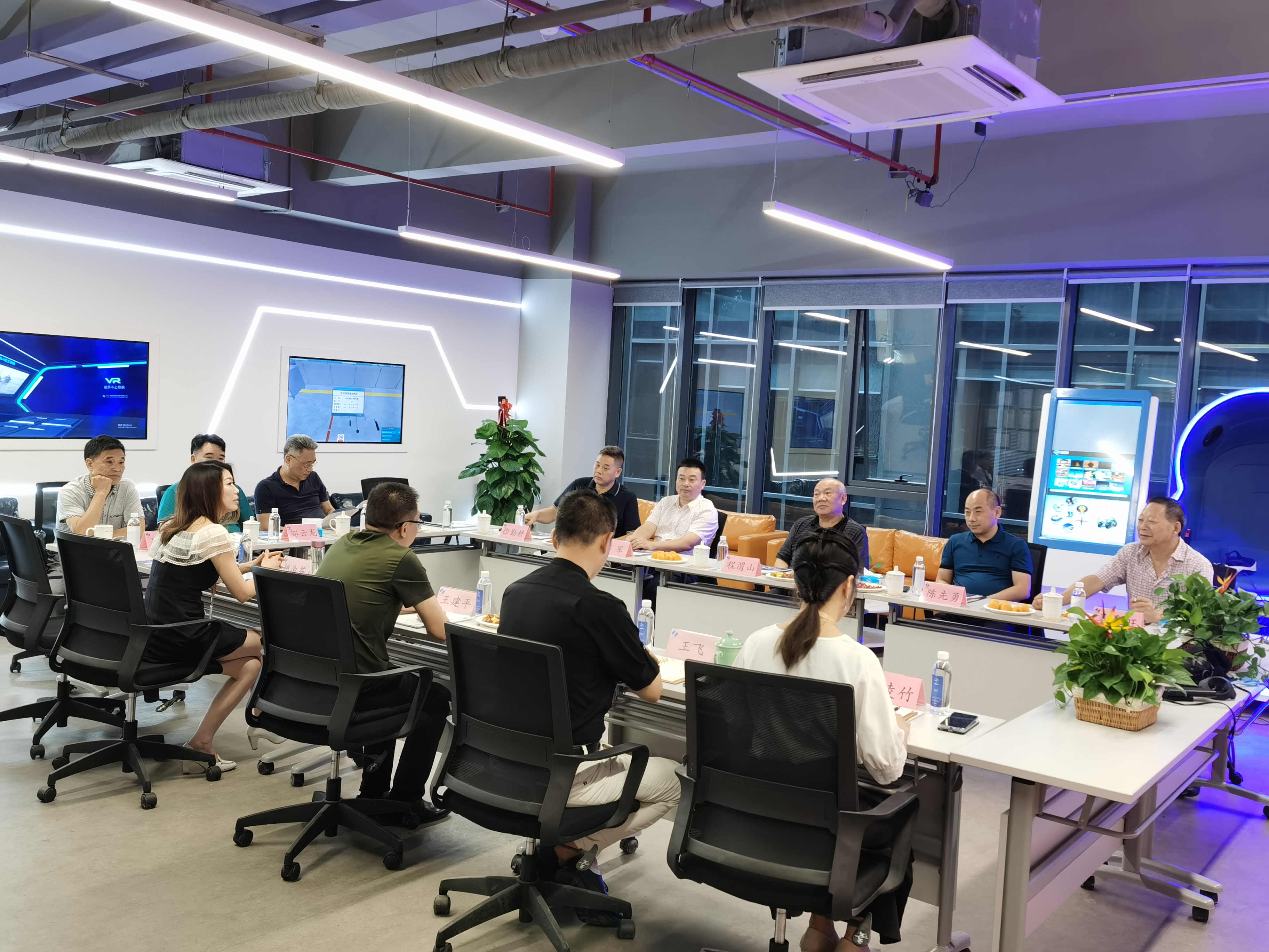 程主任在听取董事长王建平的汇报后指出,VR、AR技术的运用和覆盖很适用当前发展的需要,不仅在公安模拟训练、智慧教育领域具有使用价值,就是在党员教育也值得借鉴,在建党100周年来临之际要抓住机会,把红军长征、八路军、新四军、解放军等具有历史意义的革命战争故事,通过VR/AR技术系统还原,应给予重现,大力推广。座谈会上,各商会领导对VR、AR技术进行了充分交流和探讨,一致认为VR应用前景广阔。