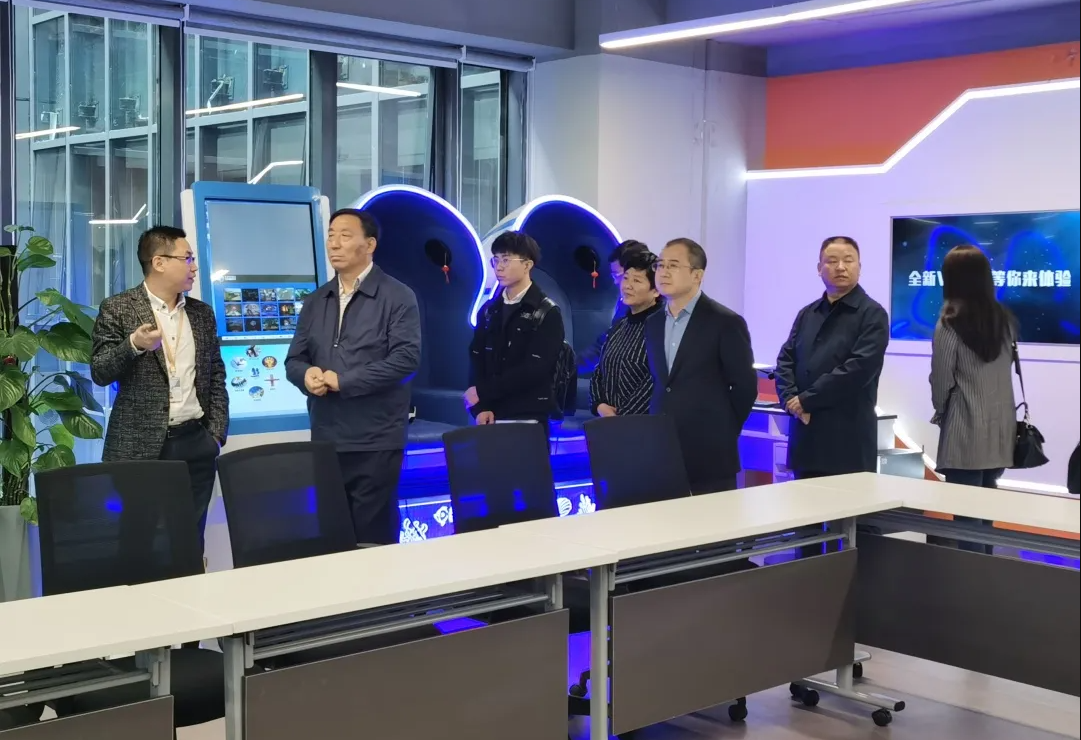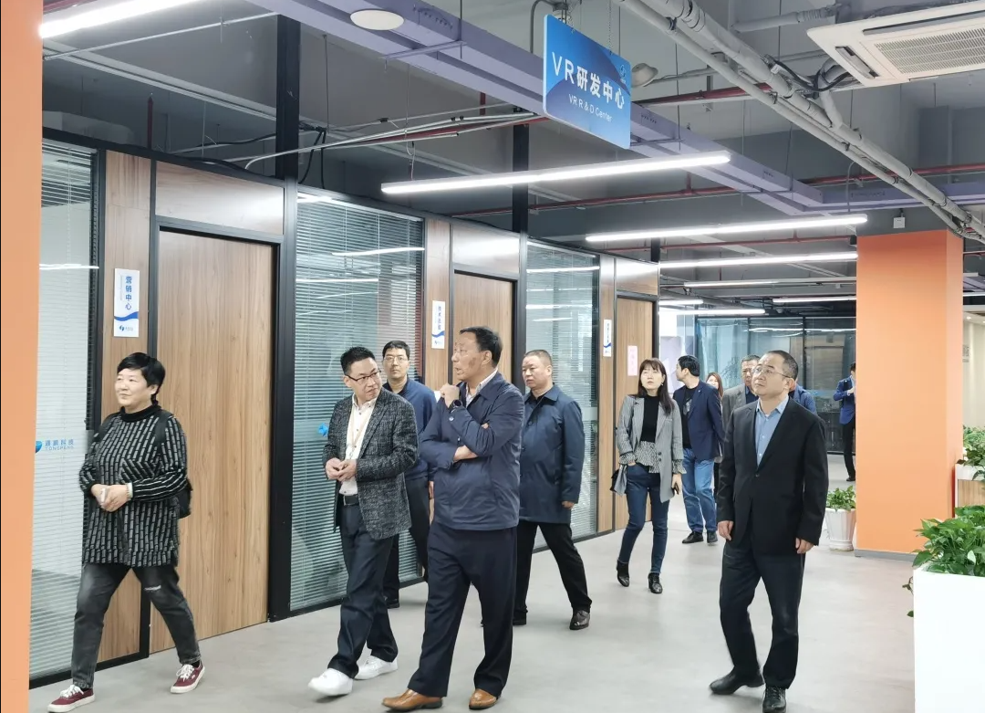 通鹏科技董事长王建平、执行副总裁姚淑芬等公司领导参与接待来访领导及嘉宾一行。董事长王建平向参访领导及嘉宾汇报了通鹏科技VR/AR技术在公安模拟训练、消防救援模拟训练、智慧教育、党建教育、智慧旅游、智慧城市等方面的研发成果及未来的研究方向。同时双方领导共同探讨了VR/AR技术在智慧城市建设中应用前景。